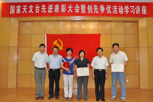 为表彰先进,弘扬正气,充分发挥党员先锋模范作用,推动国家天文台各项工作再上新台阶,台党委决定表彰一批先进支部和优秀共产党员。7月13日上午,在中国共产党成立89周年之际,国家天文台召开先进表彰大会暨创先争优活动学习讲座,为国家天文台创先争优活动奠定了良好的开端。原中纪委驻中国科学院纪检组组长、院党组成员王庭大同志和协作一片组织员李利军同志应邀参加会议。出席大会的台领导有台长严俊,党委书记刘晓群,党委副书记、副台长郑晓年和副台长郝晋新。会议由党委书记刘晓群主持。