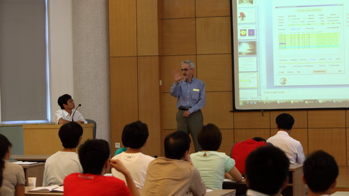 第一场报告,坎贝尔教授首先介绍了大型射电望远镜的技术与科学原理, 包括望远镜主体的建造、反射面建造、馈源支撑、自动控制、接收机制造、射电环境保护、地质结构稳定等。针对我台即将在贵州省建造500米球面射电望远镜(简称FAST)的工程项目, 他提出了许多宝贵建议,并与FAST工程工作人员做了充分的交流。