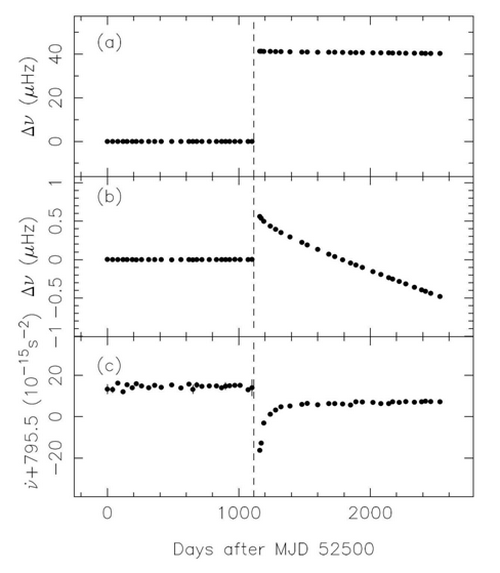 脉冲星是具快速旋转有超强磁场的中子星。脉冲星的自转一般很稳定,特别是毫秒脉冲星,比如PSR J0437-0750,其长期稳定性超过了世界上最好的原子钟。脉冲星的自转也表现出两类不稳定性:时间噪声和周期跃变。周期跃变就是其自转突然加快,主要发生在年龄在一万年至一百万年之间的脉冲星,自转频率增加相对大小一般在10-9—10-6之间,超过10-5则很罕见。周期跃变是比较珍稀的现象,目前总共发现了1800多颗脉冲星,探测到的周期跃变事件只有200次。