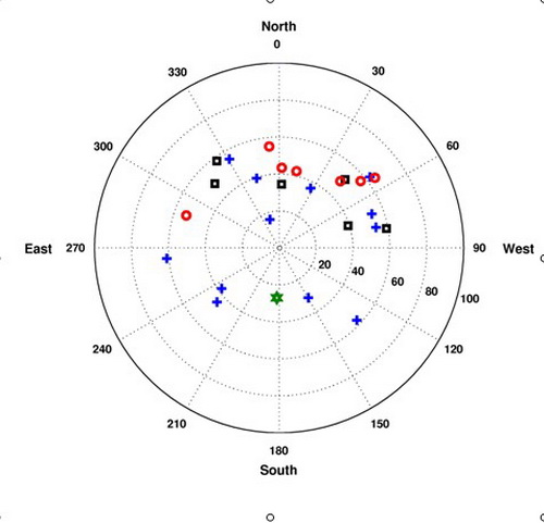 TREND“蝴蝶”天线(三角形)围绕21CMA的分布图