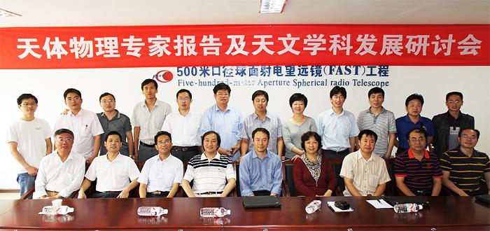 6月15日,受国家天文台·贵州大学天文联合研究中心邀请,于贵州大学“500米口径球面射电天文望远镜(FAST)”工程指挥部,部分未设置天文专业的兄弟院校天文学科负责人参加了《2012天体物理专家报告及非天文专业高校天文学科发展研讨会》。本次会议以学术交流、探讨非天文专业高校如何开展天文学教学与研究为宗旨,在课题研究的切入点选择、人才引进、学科发展目标规划、教学安排、学位点申请、经费来源、科普宣传等方面作了交流讨论。来自河北师范大学、广州大学、华中师范大学、上海师范大学、南京师范大学、山东大学威海分校、西藏大学、云南师范大学、贵州大学等九所高校及国家天文台(含云南天文台)的20余位专家参会讨论。贵州大学副校长吴次南教授、理学院党委书记杨刚教授、理学院副院长胡林和丁召教授、物理系主任唐延林教授等参与讨论。这是一次探索性的会议,是专门针对非天文专业高校天文学科发展问题的研讨会。