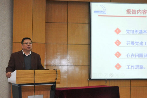 党委书记赵刚首先做述职报告,以“谋事要实”为主线,从学习、制度建设、保障机制、聚焦献力、服务群众和群团工作等六个方面,全面总结了任书记以来开展党建工作的情况;同时,通过对照分析,对查找出的台党建工作中存在的问题,如基层组织建设还需加强,宣传工作较为薄弱,对基层党总支(支部)的工作指导不够等,进行分析,提出改进措施;报告最后,对全台下一步党建工作如何开展提出总体思路:进一步加强党员思想理论建设,完善党内工作制度;系统梳理台党建工作的薄弱环节,据实分析党建工作的重点内容,推广形成一项特色工作,逐步提高国家天文台党建工作科学化水平。