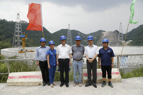 8月2日,科学技术部副部长阴和俊到国家天文台500米口径球面射电望远镜(FAST)工程现场进行调研,国家天文台台长、FAST工程经理严俊,国家天文台副台长、FAST工程常务副经理郑晓年,贵州省科技厅副厅长雷文蓉,贵州省科技厅纪检组长刘彤,FAST工程副经理彭勃,总工艺师王启明等陪同调研。