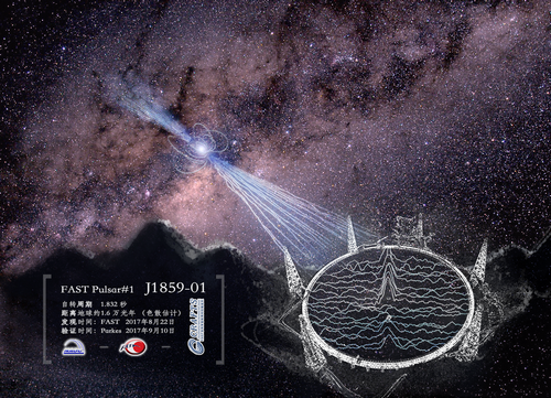 FAST望远镜探测到的脉冲星编号为J1859-0131(又名FP1-FAST pulsar #1),自转周期为1.83秒,据估算距离地球1.6万光年。