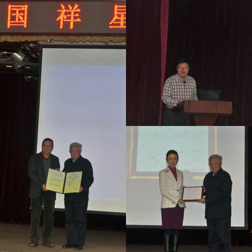 国家天文台党委书记赵刚宣读“艾国祥星”国际命名公报、命名证书,向艾国祥院士颁授命名公报、命名证书。副台长郝晋新主持命名仪式,并介绍“艾国祥星”发现过程。 纪委书记石硕介绍“艾国祥星”编号寓意,向艾院士颁授轨道运行图。