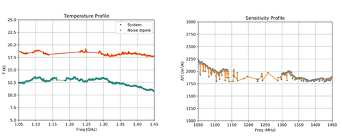 图八:左图是望远镜系统噪声的水平,已经控制到20k左右。右路图是天眼的灵敏度水平,毫无争议的世界第一。