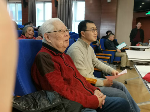 新春联欢会是由老同志自编自演的,由退休职工王钢及刘玉英老师主持。柔力球表演如行云流水,优美流畅;京剧表演雍容华美,韵味十足;诗歌朗诵抑扬顿挫、豪情满怀;舞蹈《美美哒》节奏轻快,旋律优美,老同志随着音乐翩翩起舞…会场到处洋溢着欢声笑语,值得一提的是,已过90岁生日的研究员李竞也参加了联欢会。