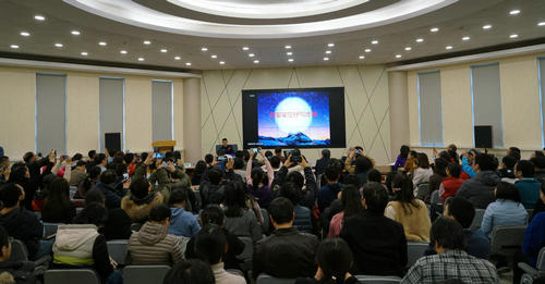 座无虚席的会场中,陈冬上校对工作中的点点滴滴娓娓道来,航天训练的艰辛、飞行任务的快乐、重返地球的“惊险”和踏上祖国大地的感动,都在他幽默诙谐的讲述中化作现场的阵阵掌声和笑声。让人印象深刻的是,每名航天员在“飞上太空”前都要经受体格、心理、专业等方面一系列严苛的训练,其中“超重耐力训练”要求航天员在高速旋转的离心机里承受40秒的8倍重力加速度,相当于8个自己的重量压在身上,每次训练都会造成航天员面部肌肉变形,呼吸困难。“72小时睡眠剥夺训练”要求大家在狭小密闭的隔离舱内开展抗疲劳抗寂寞训练,不睡觉连续工作,考验的不只是航天员的生理承受力,全程无死角监控和身后极具诱惑的上下铺,更是对人意志的挑战。“这时团体协作就显得特别重要,成功不是只靠一个人就可以的,而是要靠相互的信任和协作。”陈冬说:“个人的力量是有限的,团队的力量是无穷的。”