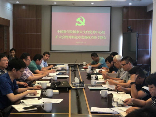 8月7日下午,国家天文台召开党委中心组2019年第七次扩大会暨对照党章党规找差距专题会议。会议由党委书记赵刚主持,院“不忘初心、牢记使命”主题教育第六指导组组长李志毅同志到会指导。台领导、党委委员、纪委委员、各党支部书记、副处级(含六级职员)及以上党员领导干部参加了会议。