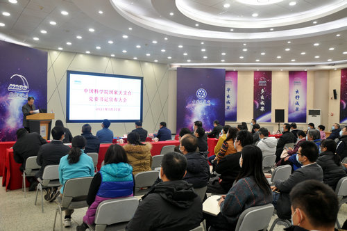 1月22日,国家天文台召开党委书记调整宣布大会。北京分院分党组书记、京区事业单位党委书记马扬出席并主持会议。台领导班子成员、党委委员、纪委委员、管理支撑部门、科研部门负责人、党支部书记及各类职工代表50余人参加了会议。