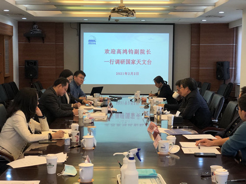 2月2日上午,中国科学院副院长高鸿钧到国家天文台调研指导工作。北京分院常务副院长、分党组成员吴建国陪同调研。国家天文台领导班子成员、主要部门负责人参加会议,台党委书记、副台长汪洪岩主持会议。