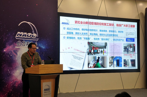 首先,党委书记汪洪岩代表常进台长向与会代表做了题为“凝心聚力,加快改革创新步伐,笃定前行,勇攀天文研究高峰”的《国家天文台2020年度工作报告(含财务工作报告)》。