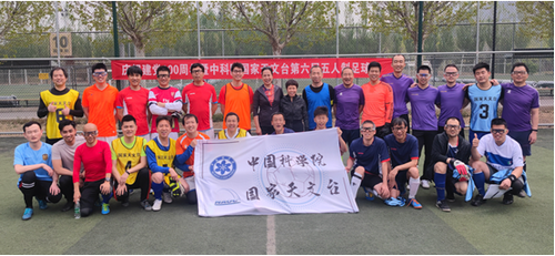 五人制足球赛是国家天文台传统赛事,已连续举办六届。本届比赛由空间、光学、应用、星系、探月、射电、太阳7个科学研究部和台机关组成8支代表队参与。比赛分为A、B两个小组,以小组赛与淘汰赛结合的方式决出最后冠军。