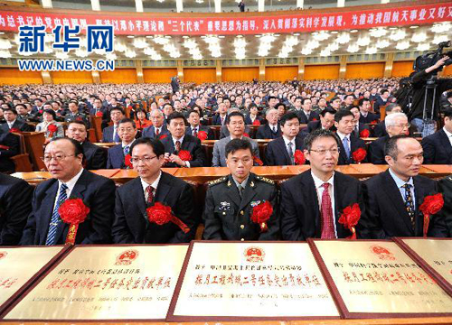 出席大会的还有刘云山、张德江、郭伯雄、令计划、路甬祥、李建国、梁光烈、马凯、万钢以及中央军委委员陈炳德、李继耐、廖锡龙、常万全、靖志远、许其亮。