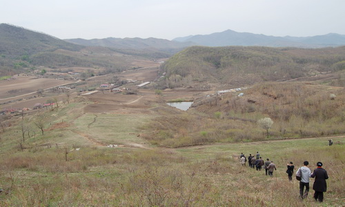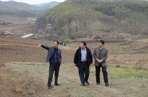 严俊(右)和刘承志(中)在小绥河村选址现场