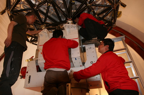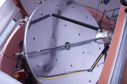 望远镜整体镜面继5月20日完成了中德亚毫米波望远镜背架安装工作后,中德亚毫米波望远镜项目组的科技人员再接再厉,经过艰苦而耐心细致的工作,于6月初成功完成了副镜及主镜面的安装工作。