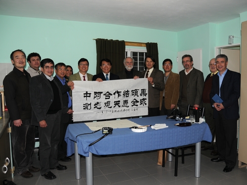 白春礼一行此次专程前往中科院国家天文台南美人造卫星激光测距站(Satellite Laser Ranging, SLR),看望一线工作人员,并指出该激光测距站依托阿根廷良好的地理、天文条件,取得了良好的开端,希望通过各方的共同努力,把40米射电望远镜建设好、运行好,使之成为我国和中科院国际合作走出去的典范,并为下一步深度国际合作奠定坚实的基础。白春礼亲笔题词鼓励中阿科研人员:“中阿合作结硕果,测地观天惠全球”。(中国科学院网站)