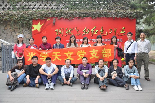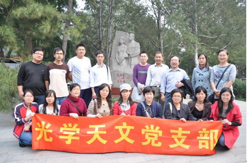 金秋十月,国旗招展,举国同庆。全国各族人民满怀喜悦,迎来了中华人民共和国62岁华诞;在国庆节的爱国曙光普照下,10月9日,光学天文党支部组织党员和入党积极分子前往北京陶然亭公园,参观了被誉为“革命的摇篮”的慈悲庵,悼念我党早期的活动家、中国共产党创始人之一高君宇和他的女友石评梅先生,并以此为契机对党员以及入党积极分子进行爱国主义教育。